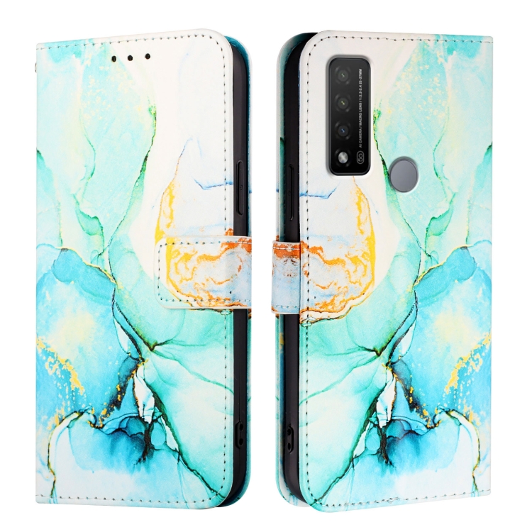 Funda de Cuero con Tapa para TCL 20R 5G Pt003 con Diseño Mármol (Verde)