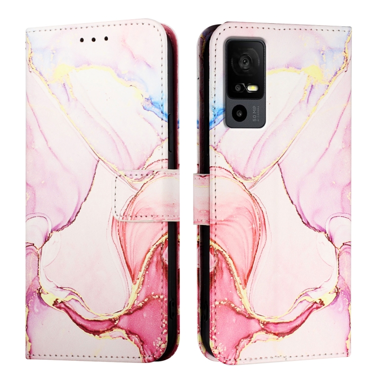 Funda de Cuero con Tapa y Diseño Mármol para TCL 40R 5G Pt003 (Oro Rosa)