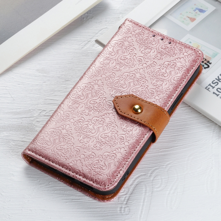 Funda de Cuero con Tapa y Diseño Floral en Relieve para Motorola Edge 50 (Rosa)