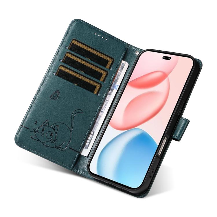 Funda de cuero con tapa y estampado de gato adorable para Honor 400 Pro Global (160,8 mm) (verde oscuro)