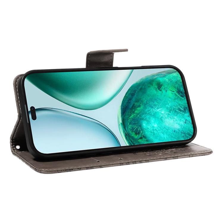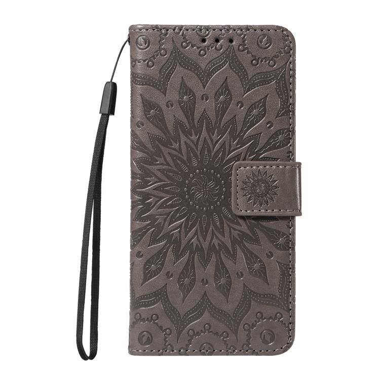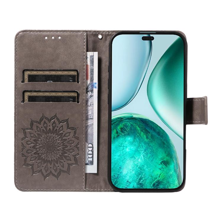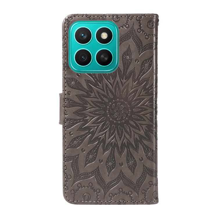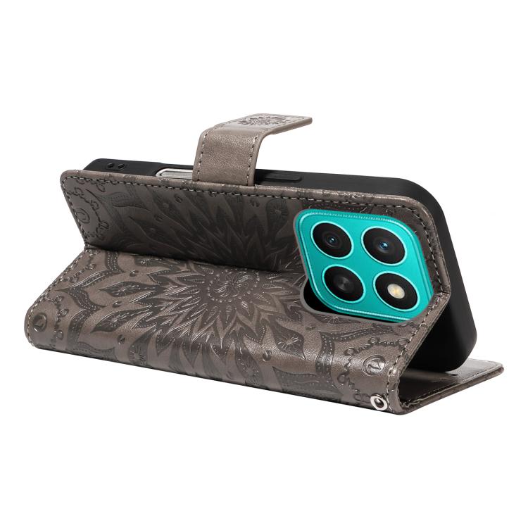 Funda de Cuero con Tapa y Estampado de Girasoles en Relieve para Honor X8C 4G (Gris)