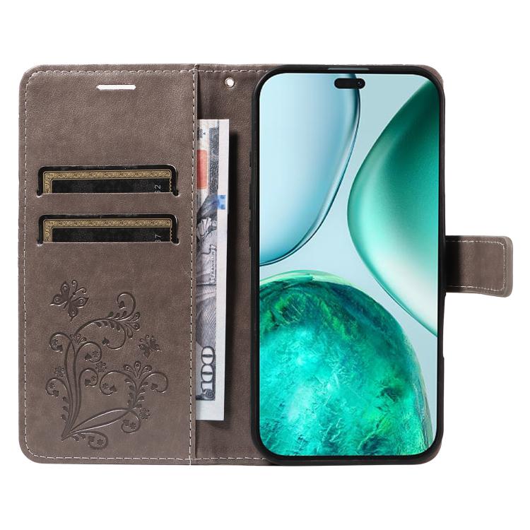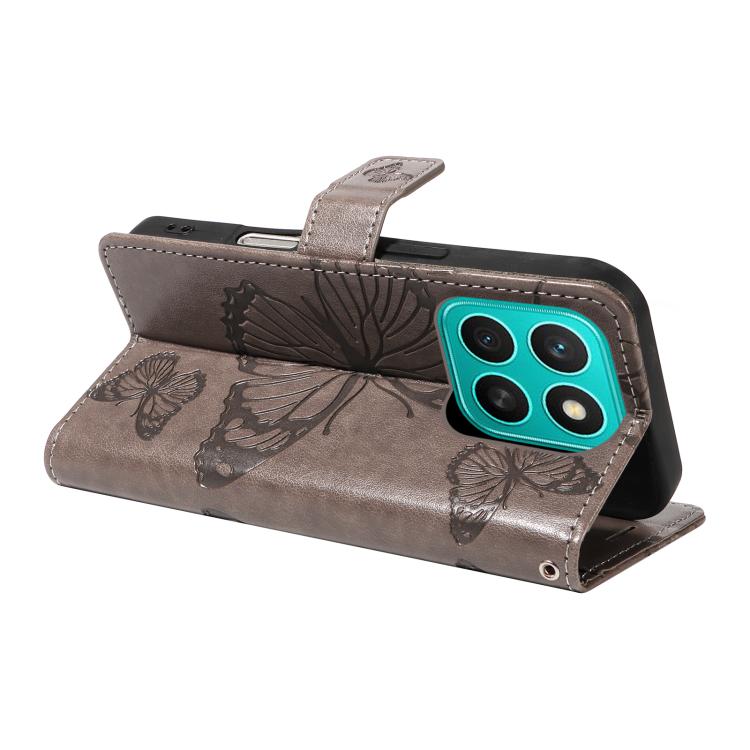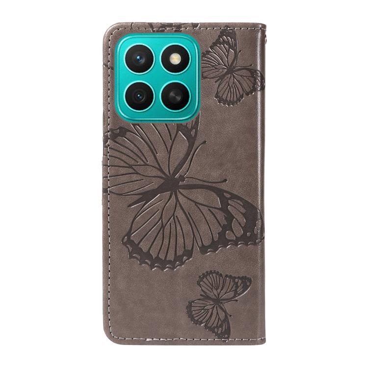 Funda de Cuero con Tapa y Estampado Mariposas 3D para Honor X8C 4G (Gris)