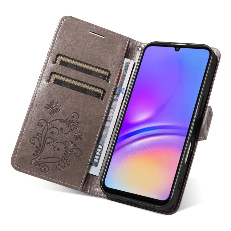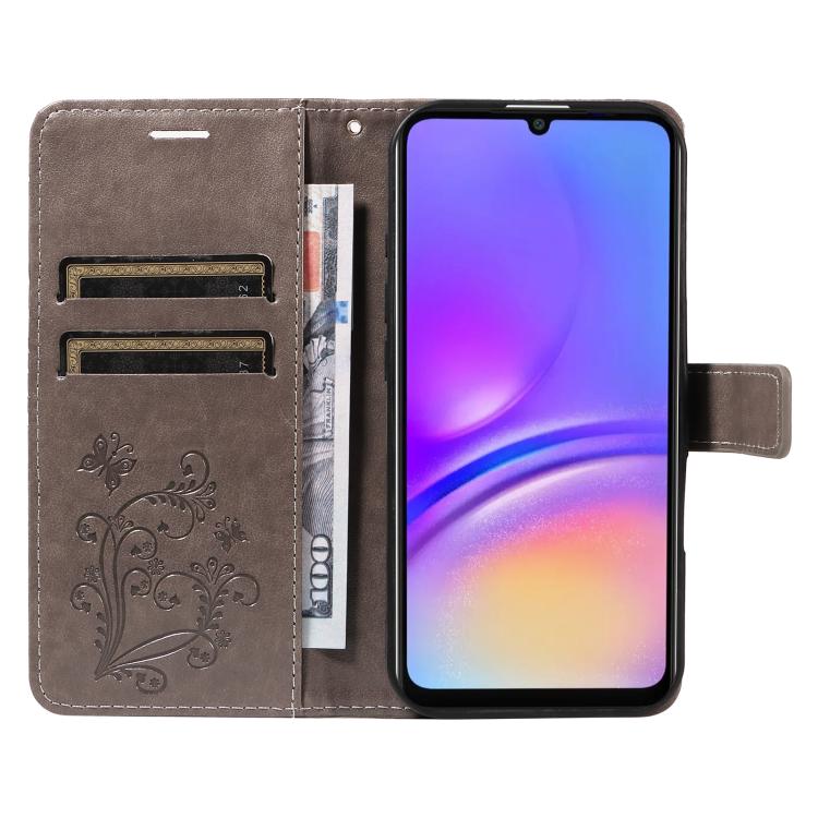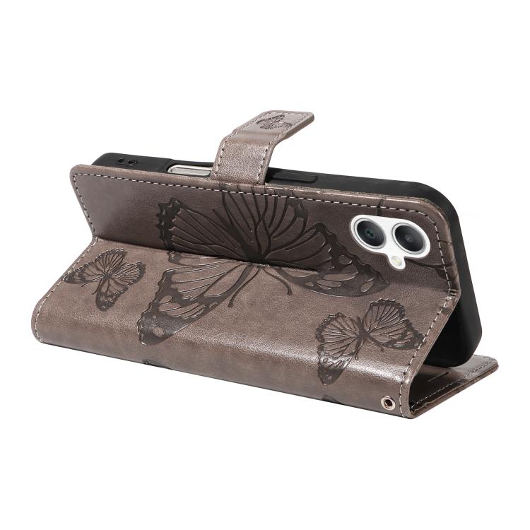 Funda de cuero con tapa y estampado de mariposas en relieve 3D para Samsung Galaxy A07 5G (gris)