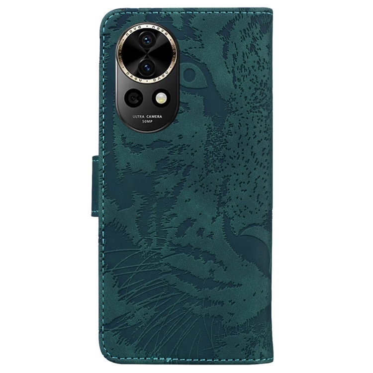 Funda de Cuero con Tapa y Estampado de Tigre para Huawei Nova 12 (Verde)
