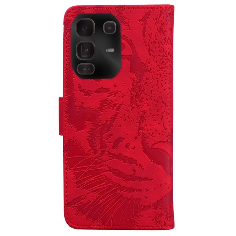 Funda de cuero con tapa y estampado de tigre para Infinix Note 50 Pro+ (roja)