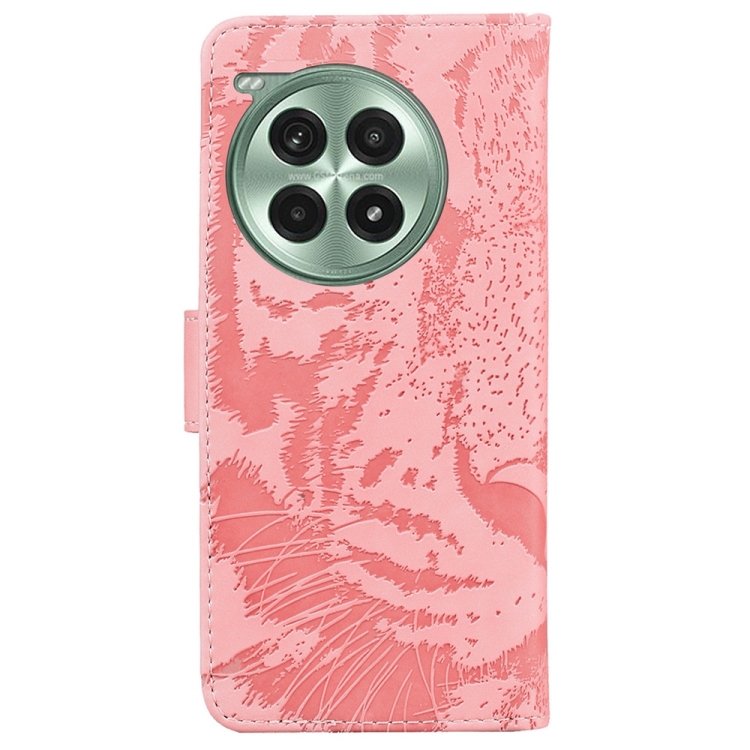 Funda de Cuero con Tapa y Estampado de Tigre para OnePlus Ace 3 Pro (Rosa)