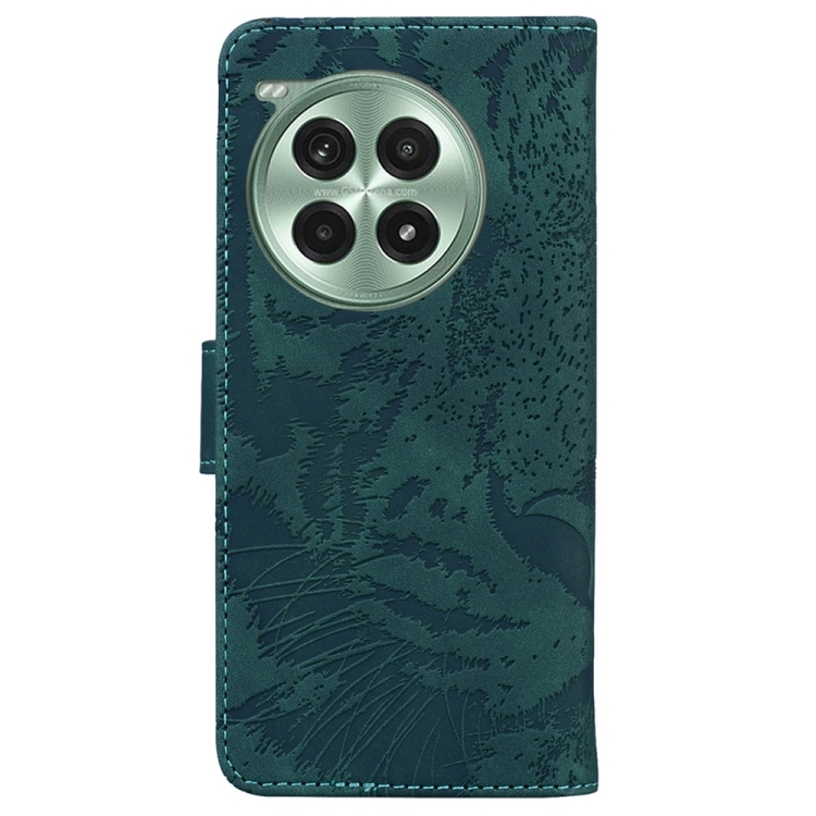 Funda de Cuero con Tapa y Estampado de Tigre para OnePlus Ace 3 Pro (Verde)