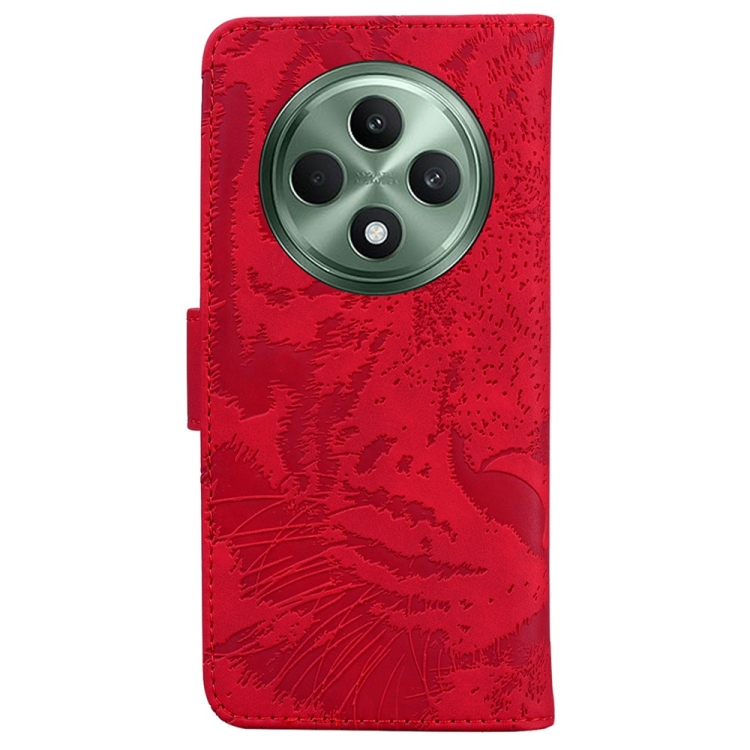 Funda de Cuero con Tapa y Estampado de Tigre para Oppo Reno12 F 5G (Rojo)