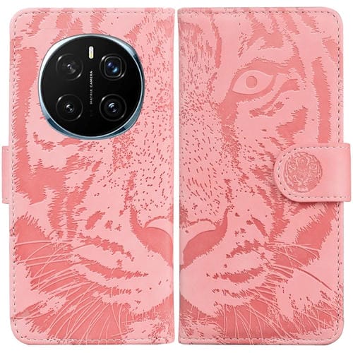 Funda de Cuero con Tapa y Estampado de Tigre para Honor Magic7 Pro (Rosa)