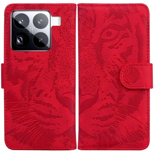 Funda De Cuero Con Tapa Y Estampado De Tigre Para Xiaomi 15 Pro (Roja)