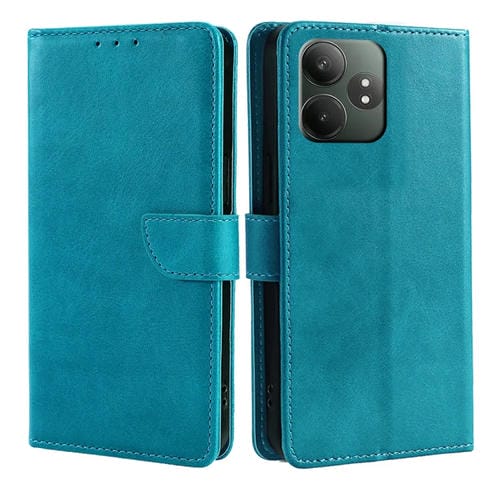 Funda de Cuero con Tapa y Hebilla con Textura de Piel de Becerro para Realme Gt Neo6 Se (Azul Claro)
