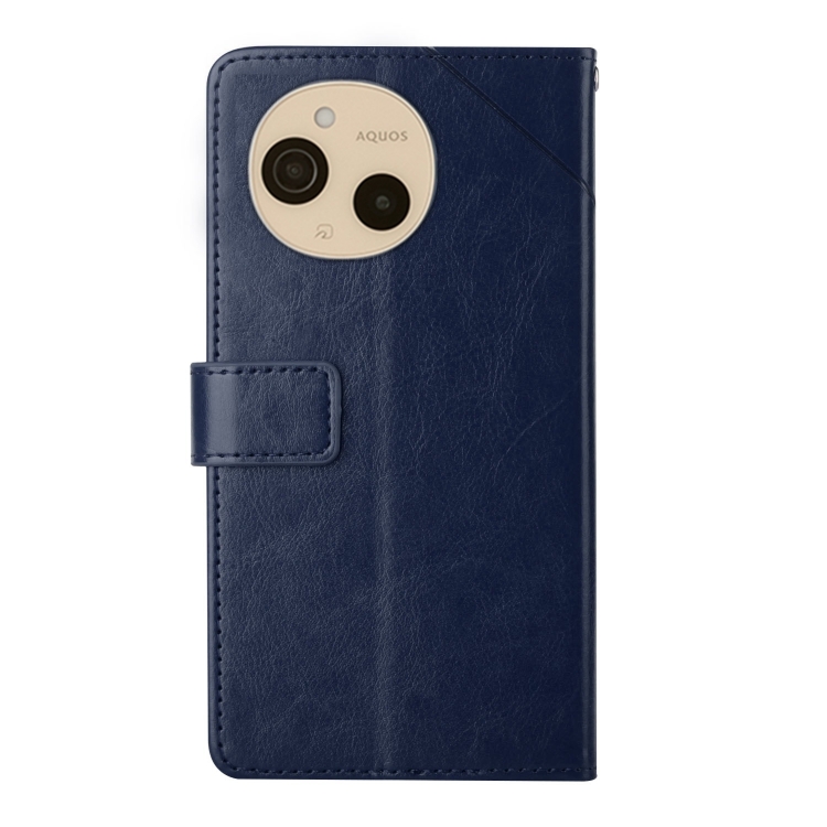 Funda de Cuero con Tapa y Patrón en Y para Sharp Aquos Sense9 Ht01 (Azul)