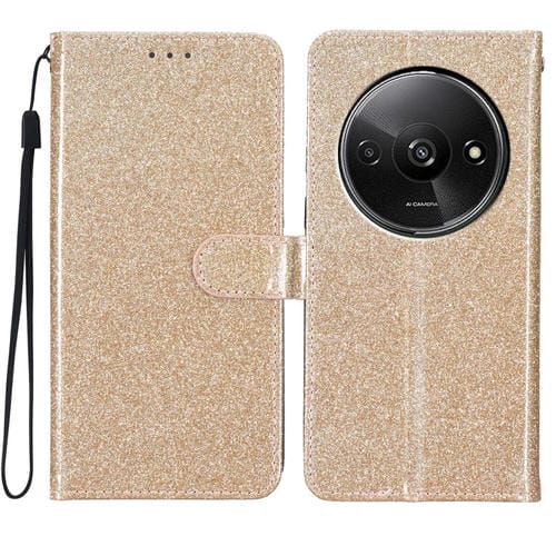 Funda de Cuero con Tapa y Purpurina para Redmi A3 (Dorada)