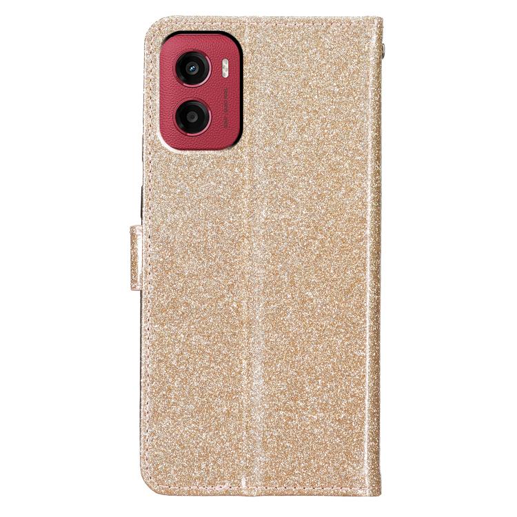Funda de Cuero con Tapa y Purpurina para Motorola Moto G05 (Dorada)
