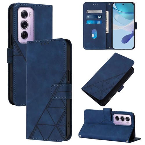 Funda de Cuero con Tapa y Relieve 3D para Teléfono Oppo Reno12 Pro Global Crossbody (Azul)