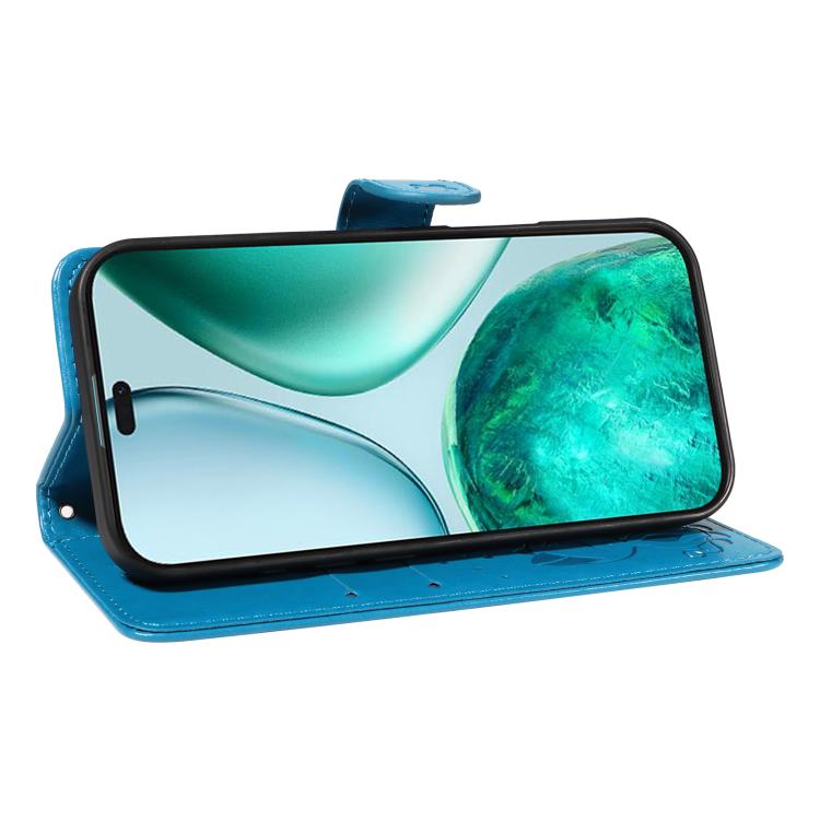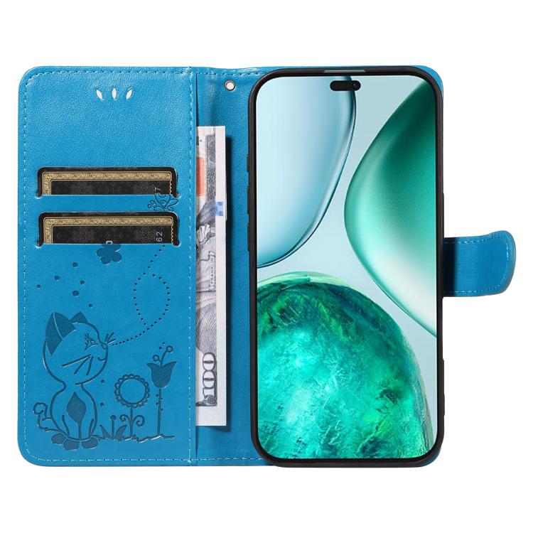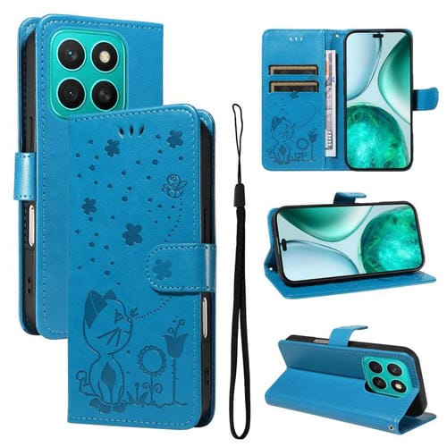 Funda de Cuero con Tapa y Relieve de Gato y Abeja para Honor X8C 4G (Azul)