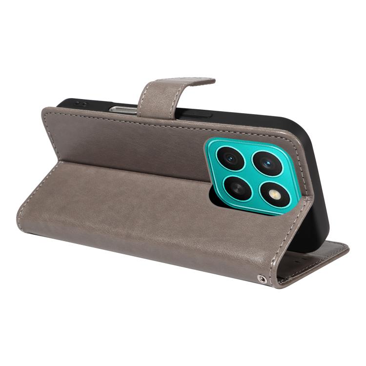 Funda de Cuero con Tapa y Relieve de Gato y Abeja para Honor X8C 4G (Gris)