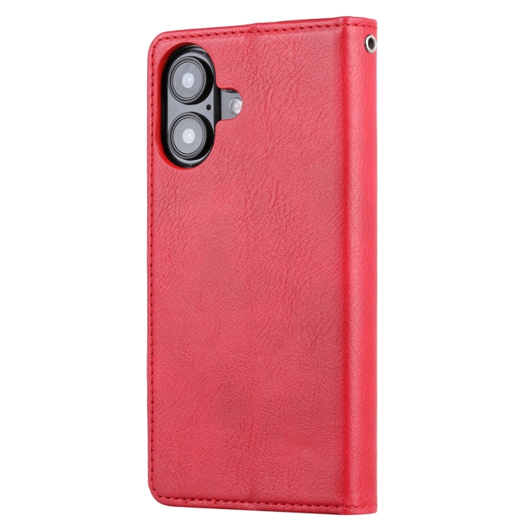 Funda de Cuero para iPhone 16 Plus con Tapa y Textura Amasable (Rojo)