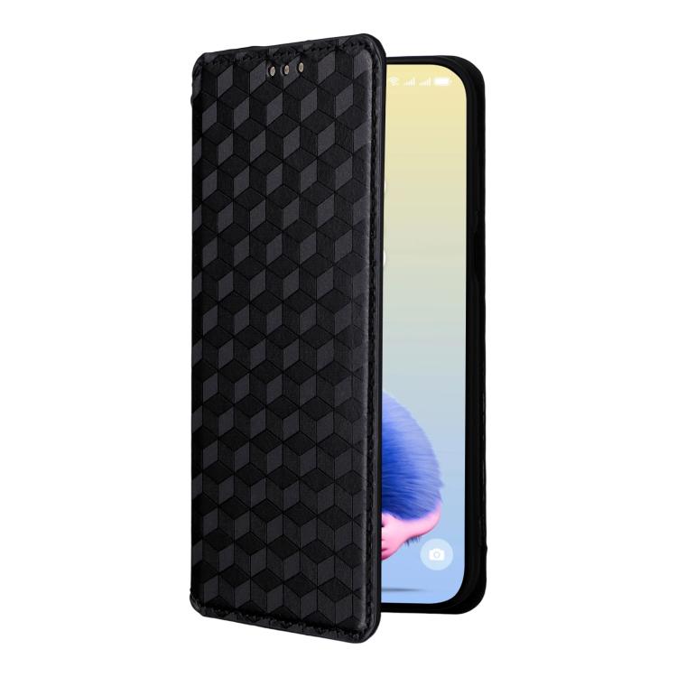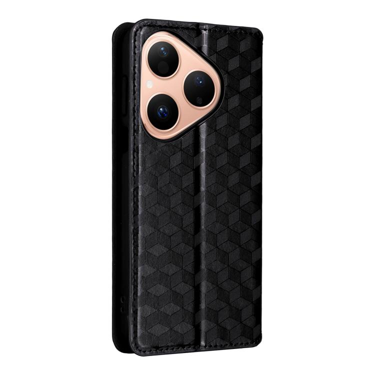 Funda de cuero con tapa y textura de cuadrícula cúbica para Huawei Pura 80 5G (negra)