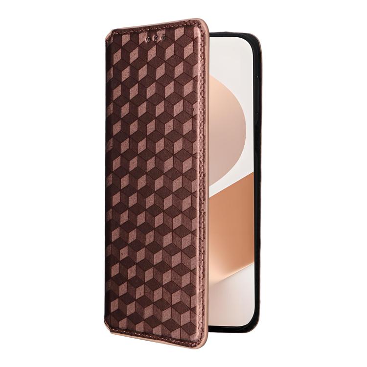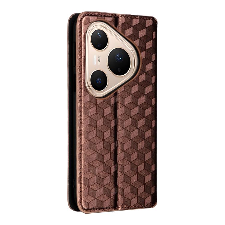 Funda de cuero con tapa y textura de cuadrícula cúbica para Huawei Pura 80 Pro 5G / 80 Pro+ 5G (marrón)