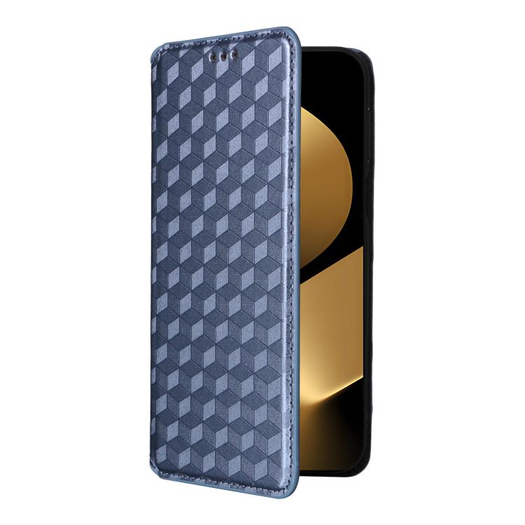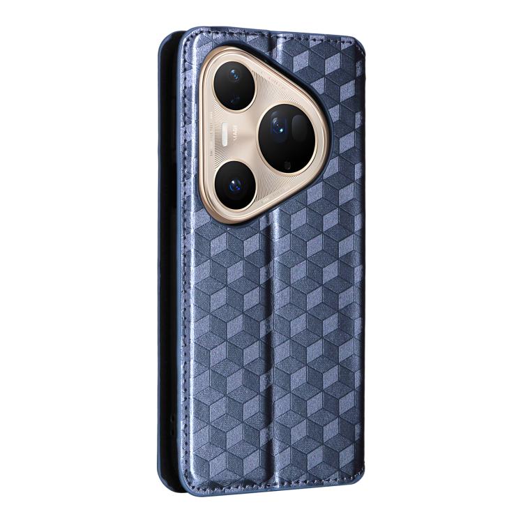 Funda de cuero con tapa y textura de cuadrícula cúbica para Huawei Pura 80 Ultra 5G (azul)
