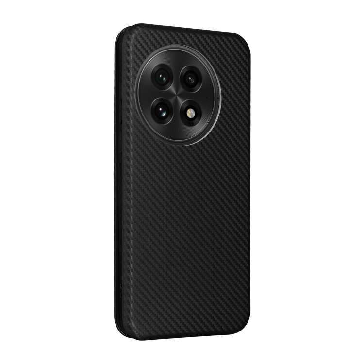 Funda de Cuero con Tapa y Textura de Fibra de Carbono para OnePlus 13 (Negra)