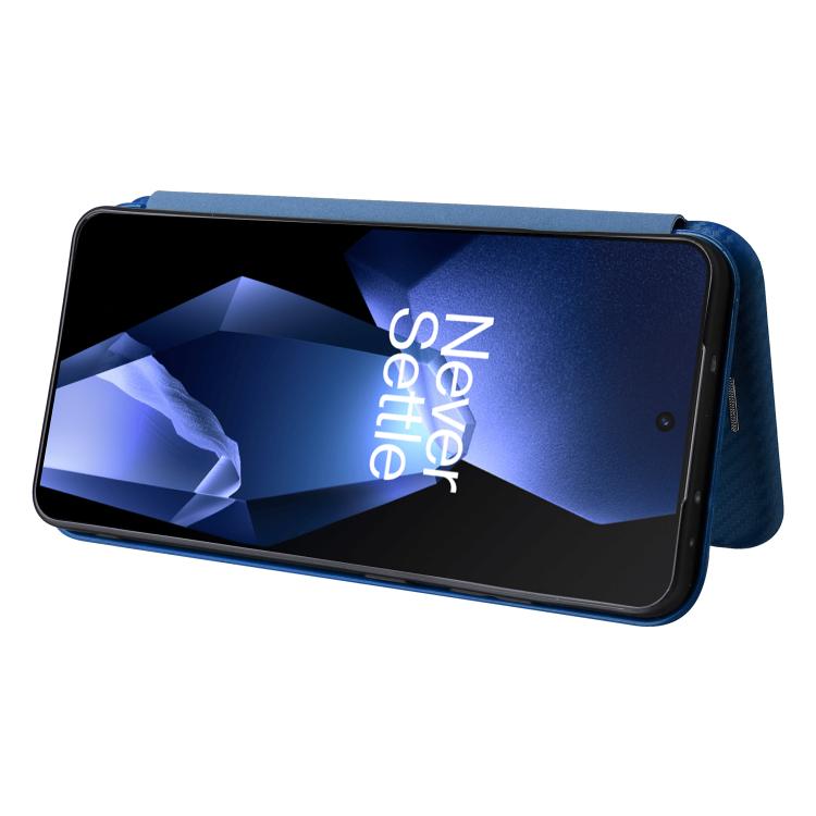 Funda Cuero con Tapa y Fibra de Carbono para OnePlus Ace 5 Pro (Azul)