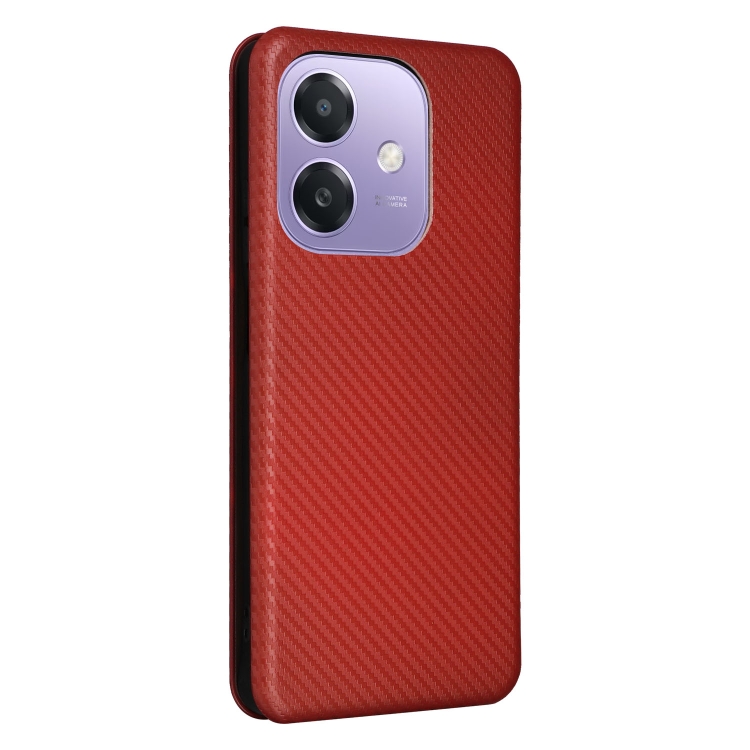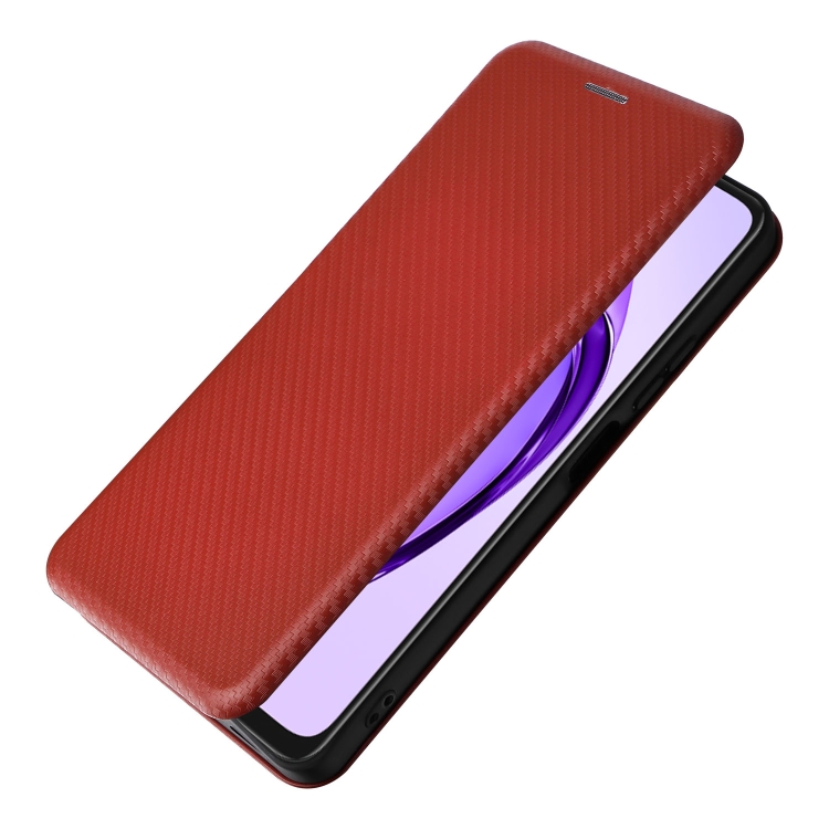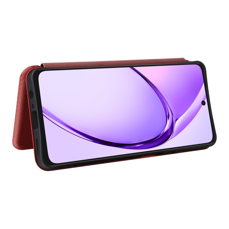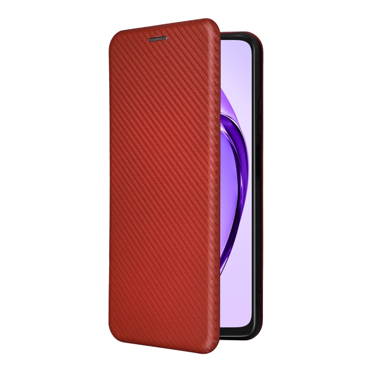 Funda de Cuero con Textura de Fibra de Carbono para Oppo A3X 5G (Marrón)