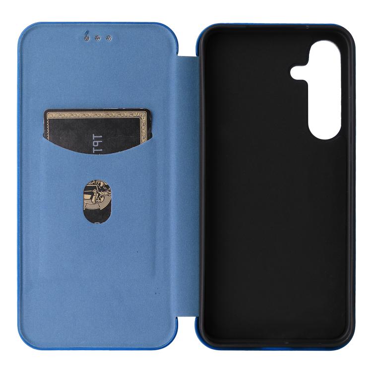 Funda de cuero con tapa y textura de fibra de carbono para Samsung Galaxy S25 FE 5G (azul)