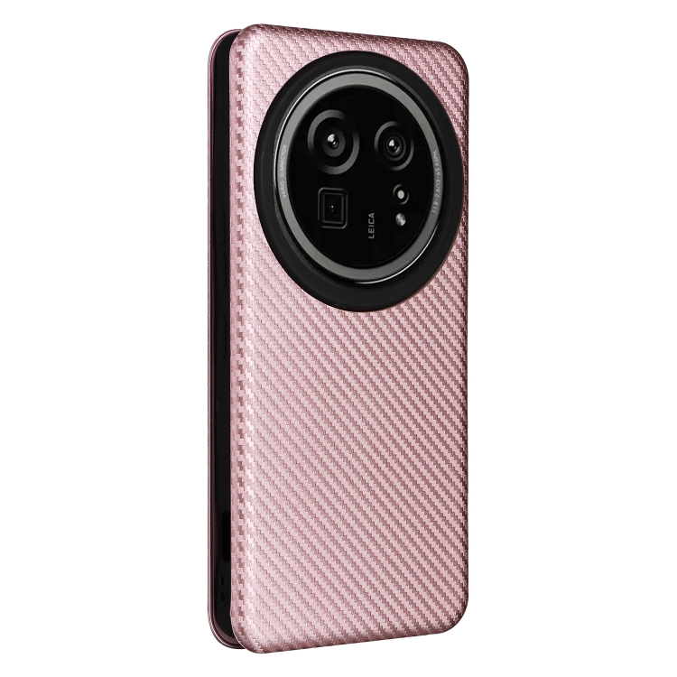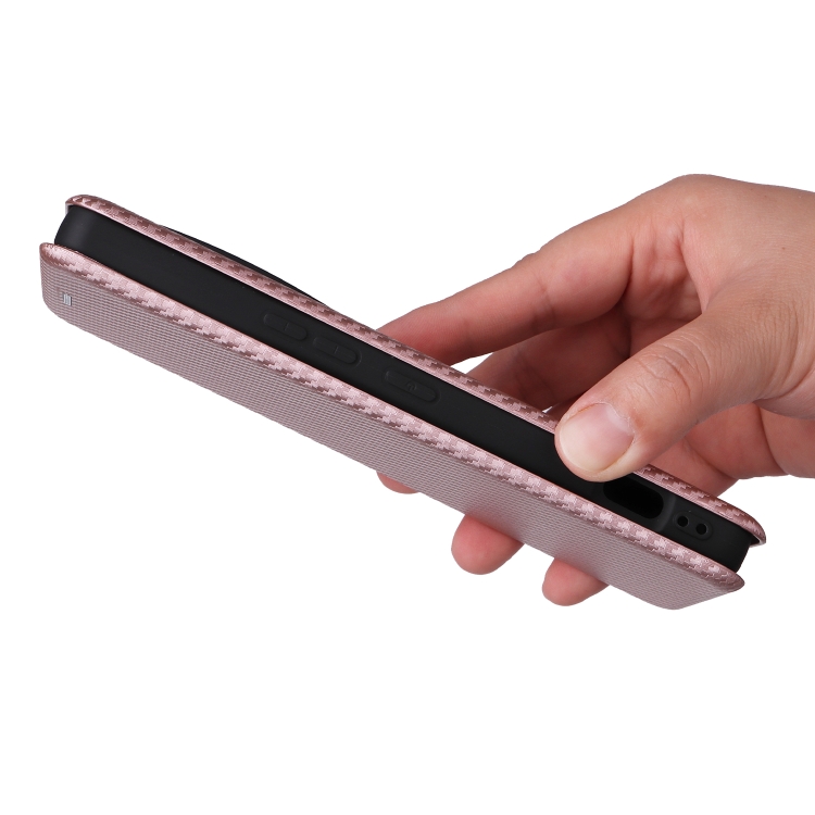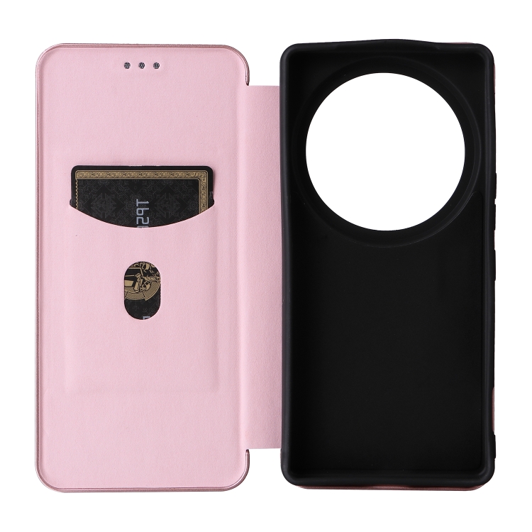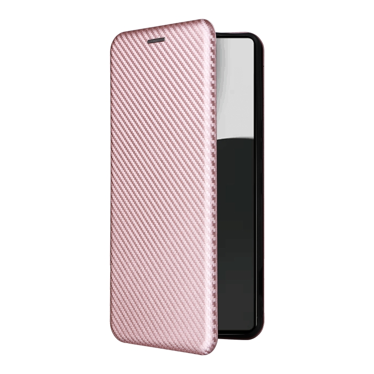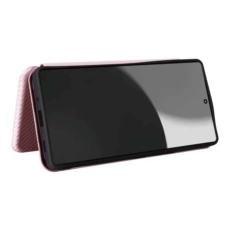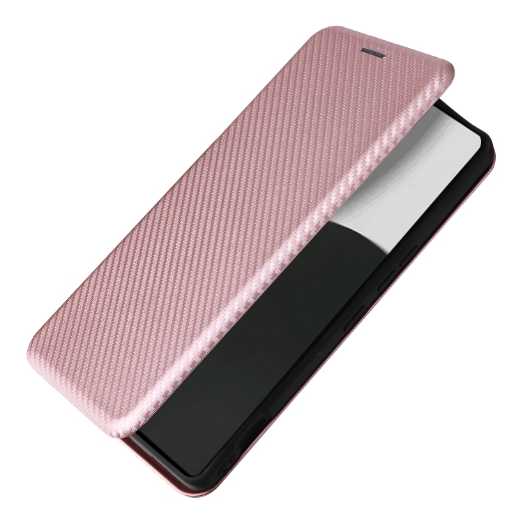 Funda de Cuero con Tapa y Textura de Fibra de Carbono para Sharp Aquos R9 Pro (Rosa)
