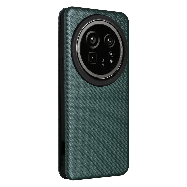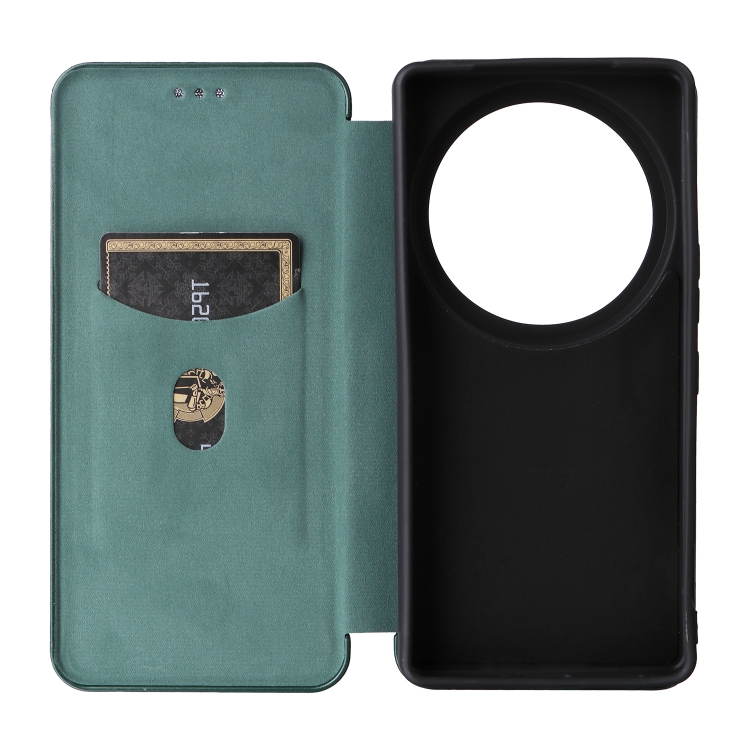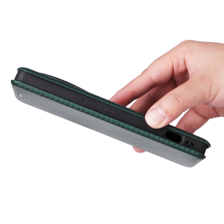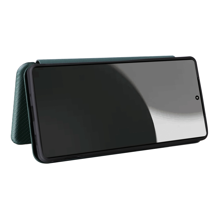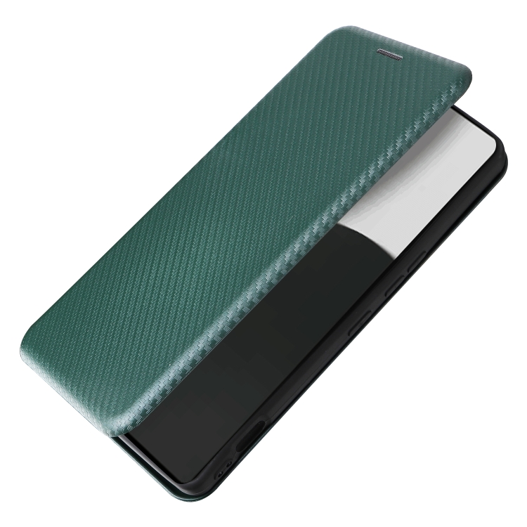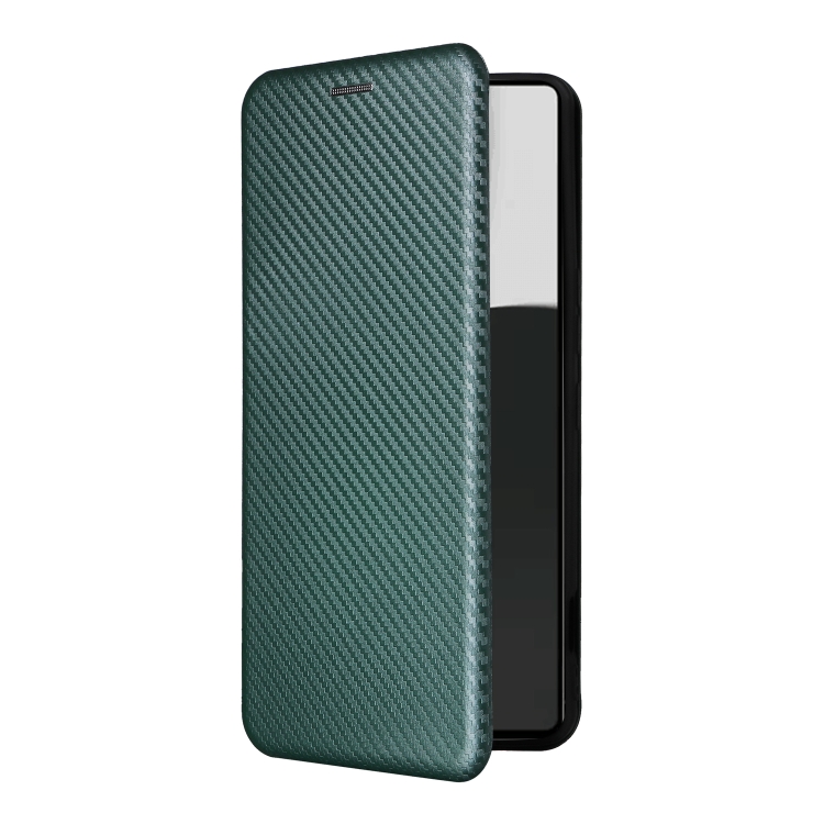 Funda de Cuero con Tapa y Textura de Fibra de Carbono para Sharp Aquos R9 Pro (Verde)