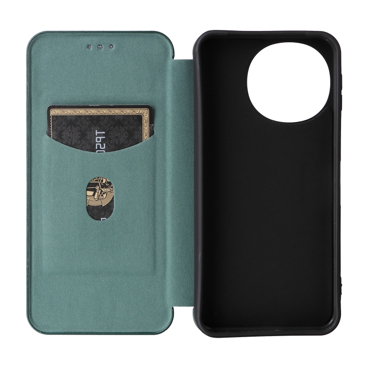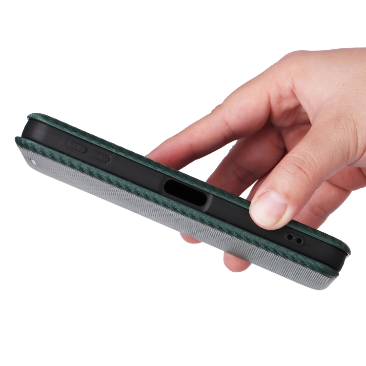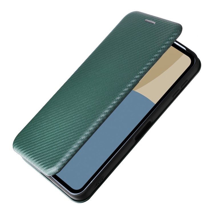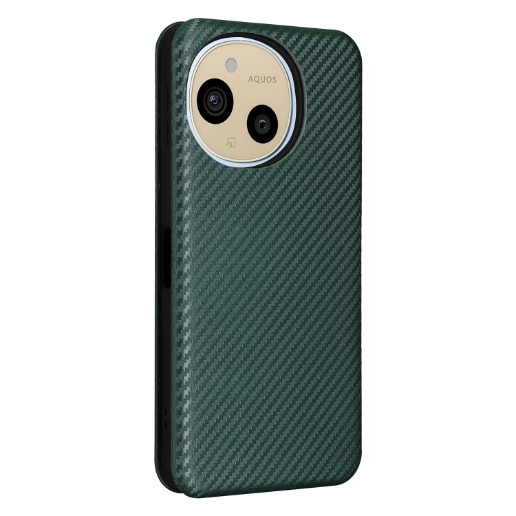 Funda de Cuero con Tapa y Textura de Fibra de Carbono para Sharp Aquos Sense9 (Verde)