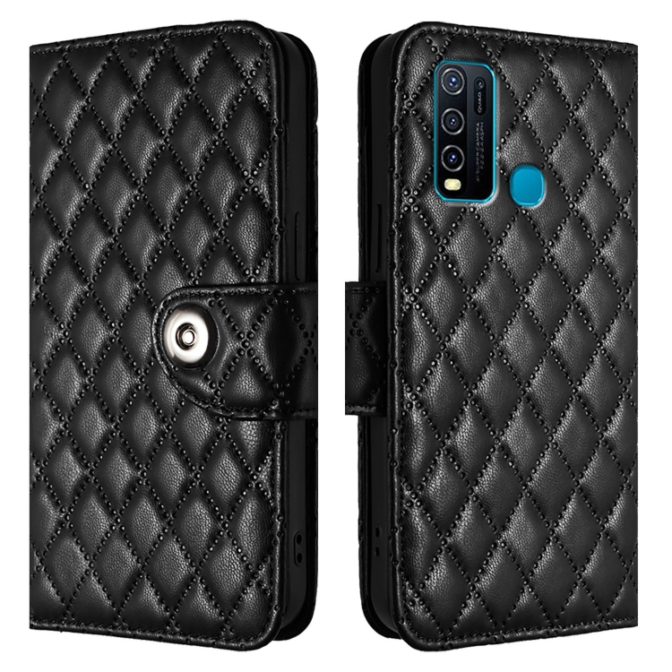 Funda de Cuero con Tapa y Textura Rombal Global para Vivo Y30 4G con Cordón (Negro)