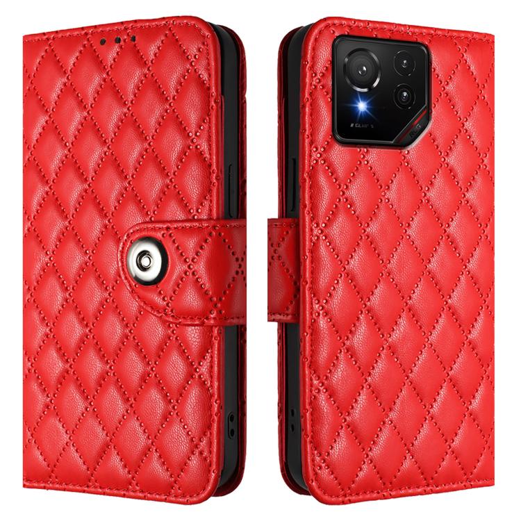 Funda de Cuero con Textura Rómbica y Cordón para Asus Rog Phone 9/9 Pro (Roja)