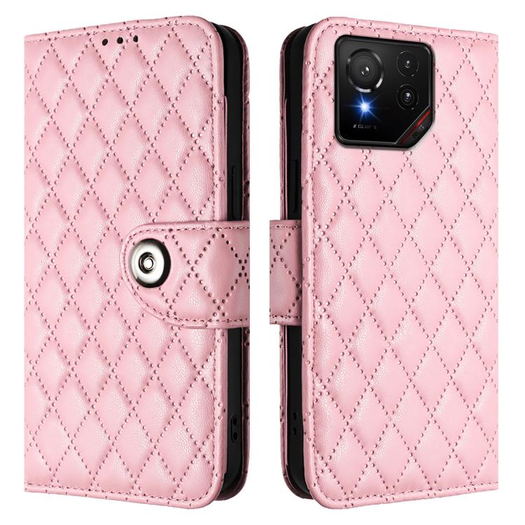 Funda de Cuero con Textura Rómbica y Cordón para Asus Rog Phone 9/9 Pro (Rosa)