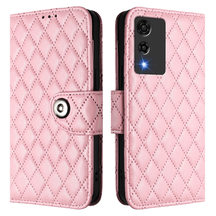Funda de Cuero con Tapa y Textura Rombal para Cubot A10 con Cordón (Rosa)