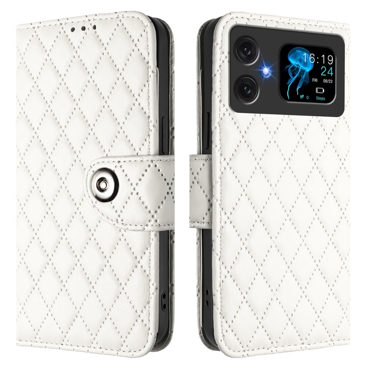 Funda de Cuero con Tapa y Textura Rombal para Cubot A20 con Cordón (Blanco)