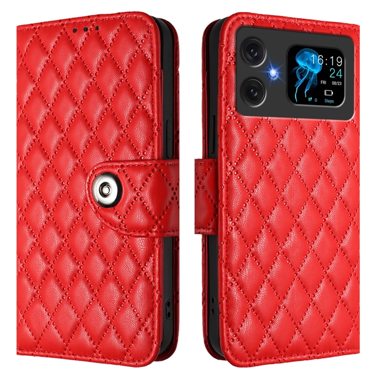 Funda de Cuero con Tapa y Textura Rombal para Cubot A20 con Cordón (Rojo)
