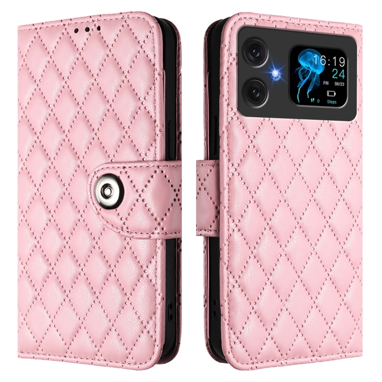 Funda de Cuero con Tapa y Textura Rombal para Cubot A20 con Cordón (Rosa)