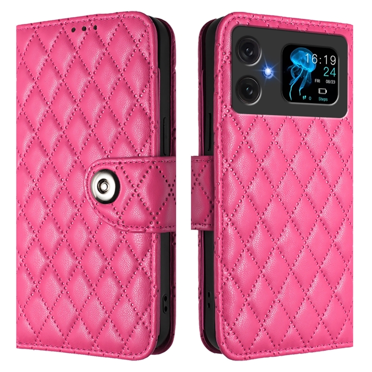 Funda de Cuero con Tapa y Textura Rombal para Cubot A20 con Cordón (Rosa y Rojo)