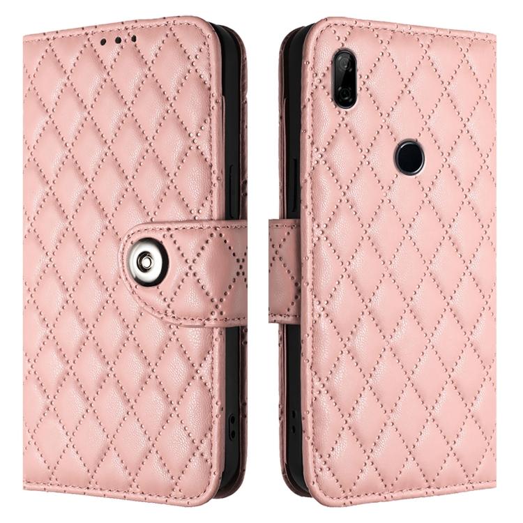 - 1x Funda de Cuero con Tapa y Textura Rombal para Huawei P Smart Z / Y9 Prime 2019 con Cordón (Rosa Coral)