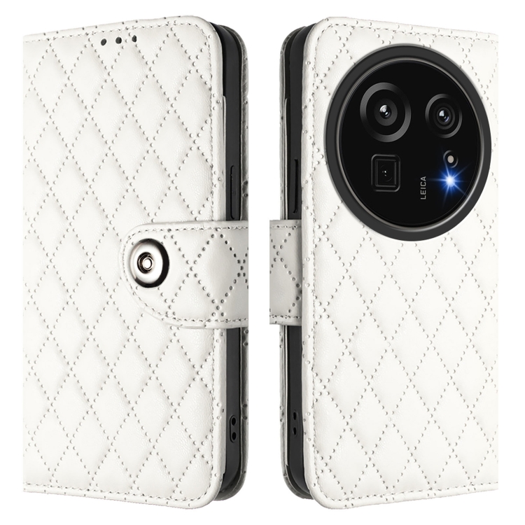 Funda de Cuero con Tapa y Textura Rombal para Sharp Aquos R9 Pro con Cordón (Blanco)