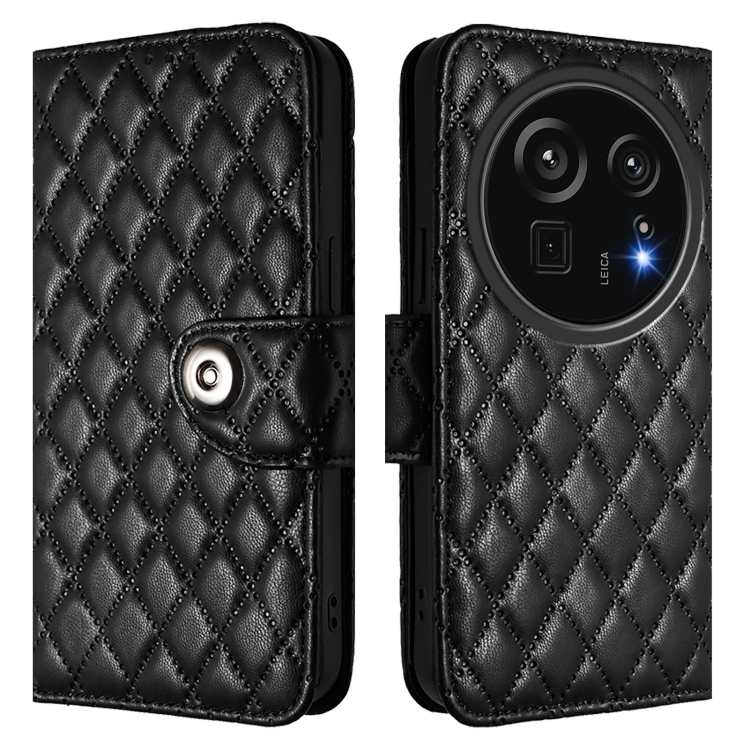 Funda de Cuero con Tapa y Textura Rombal para Sharp Aquos R9 Pro con Cordón (Negro)