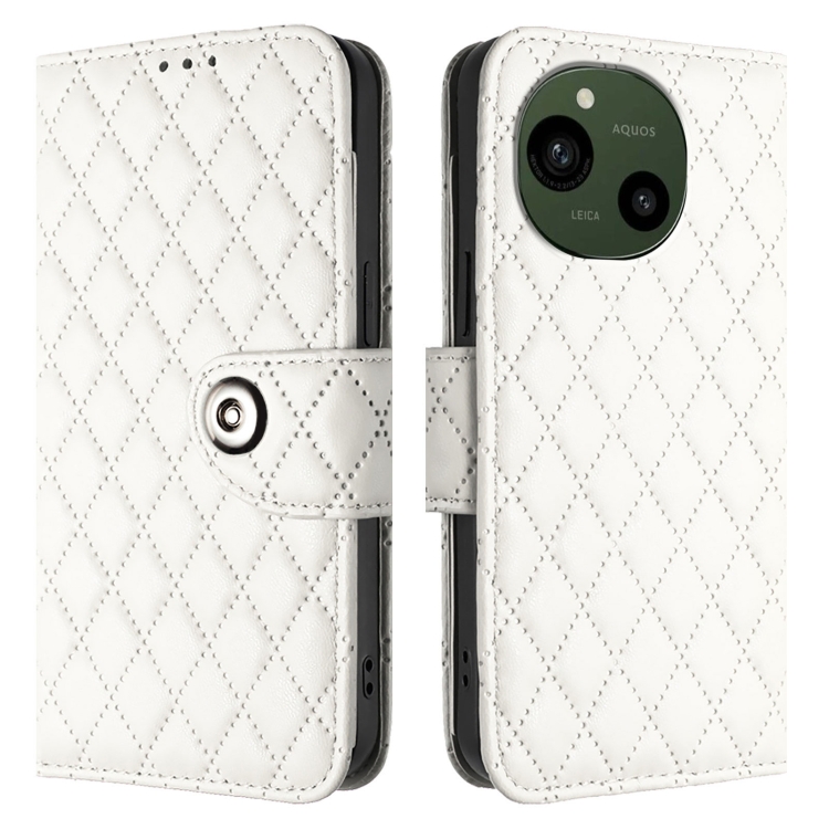Funda de Cuero con Tapa y Textura Rombal para Sharp Aquos R9 Sh-51E con Cordón (Blanco)