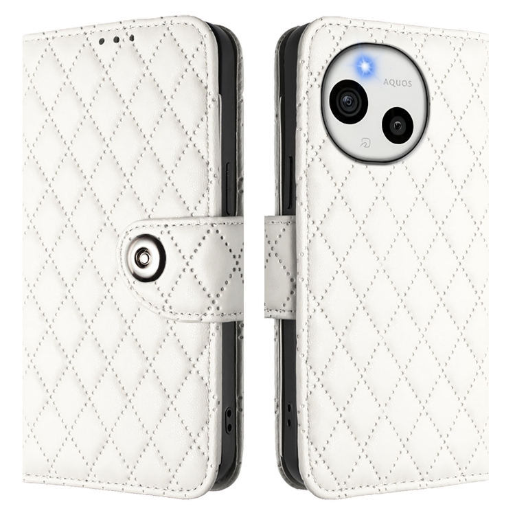 Funda de Cuero con Tapa y Textura Rombal para Sharp Aquos Sense9 Plus con Cordón (Blanco)