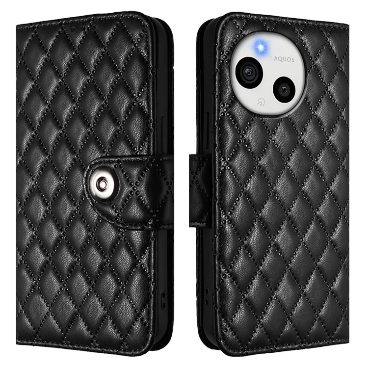 Funda de Cuero con Tapa y Textura Rombal para Sharp Aquos Sense9 Plus con Cordón (Negro)