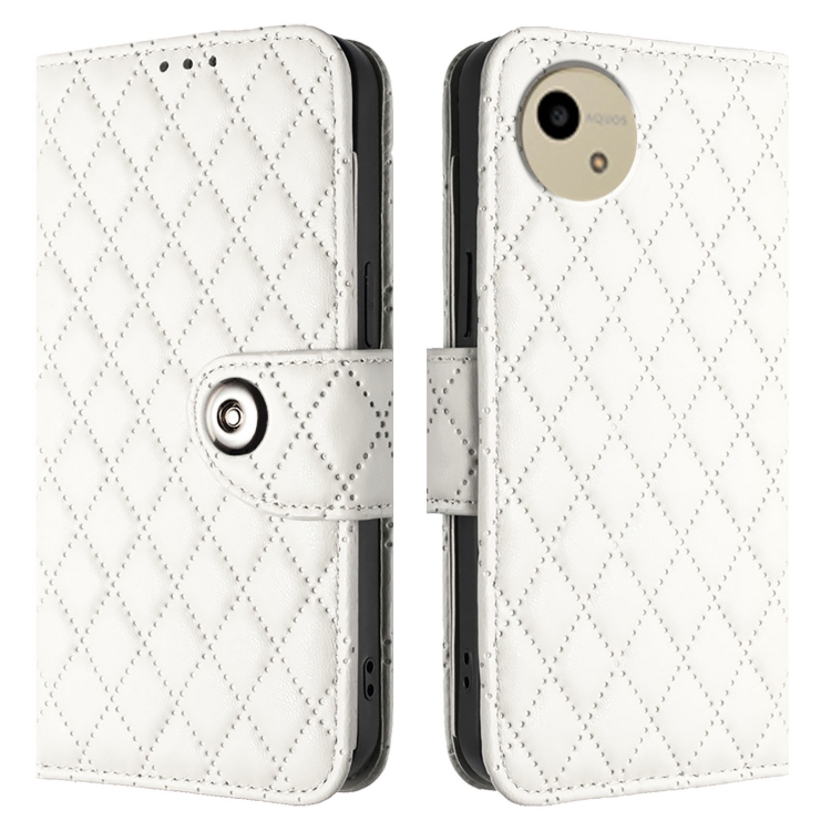 Funda de Cuero con Tapa y Textura Rombal para Sharp Aquos Wish4 Sh-52E con Cordón (Blanco)