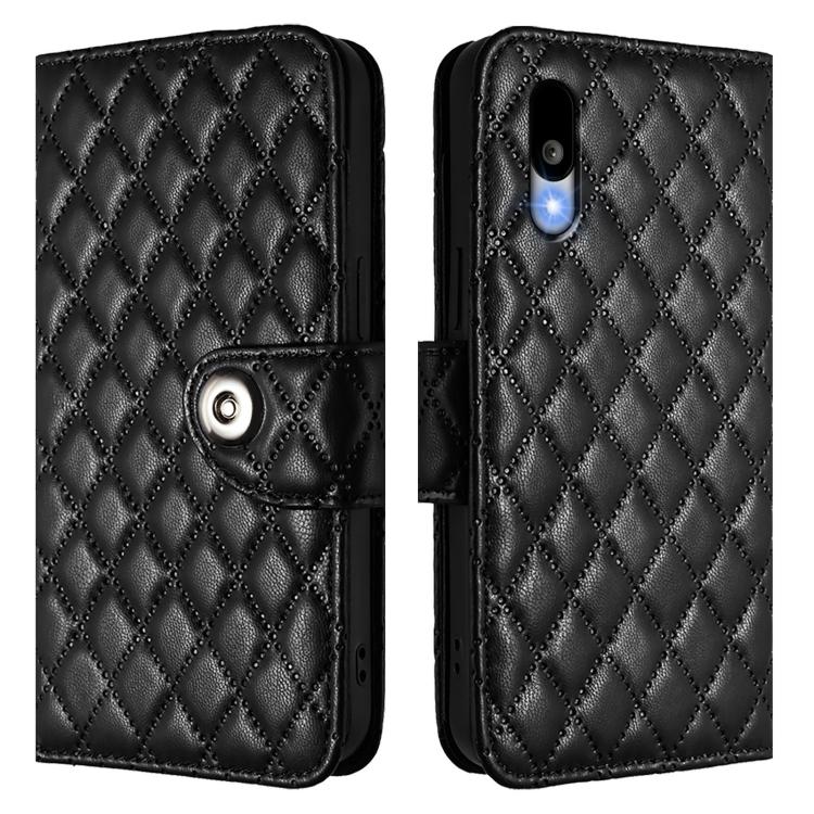 Funda de Cuero con Tapa y Textura Rombal para Sharp Basio Active 3 con Cordón (Negro)