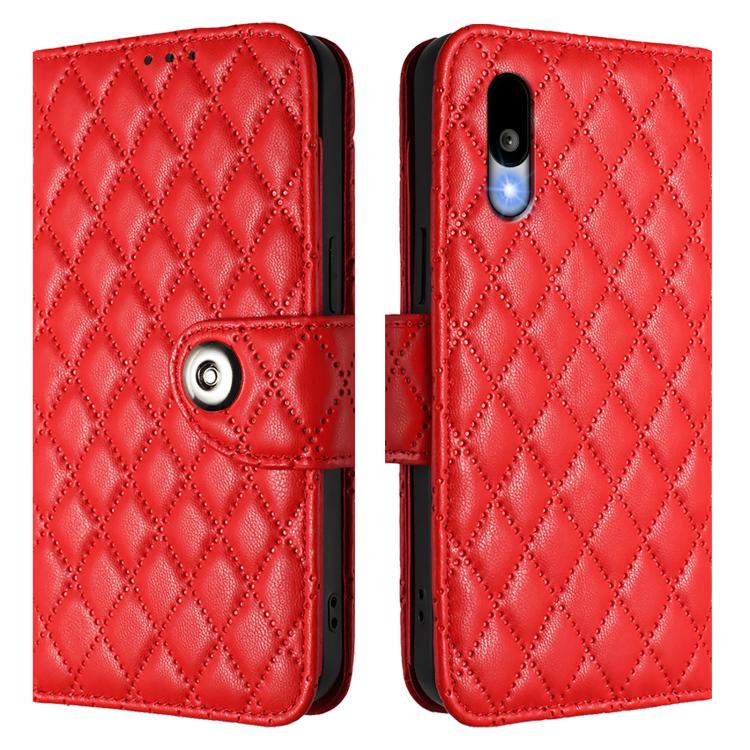 Funda de Cuero con Tapa y Textura Rombal para Sharp Basio Active 3 con Cordón (Rojo)