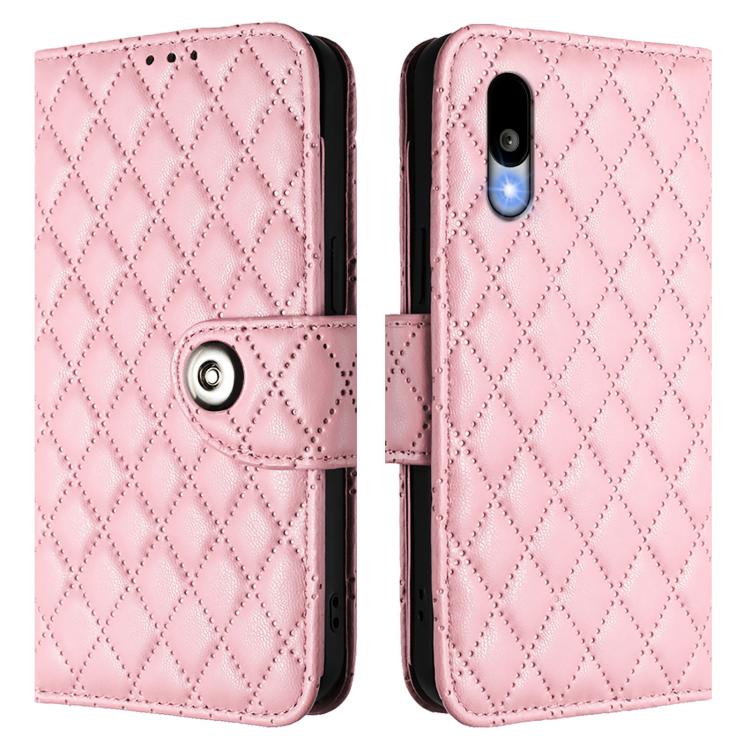 Funda de Cuero con Tapa para Sharp Basio Active 3 con Textura Rombal y Cordón (Rosa)